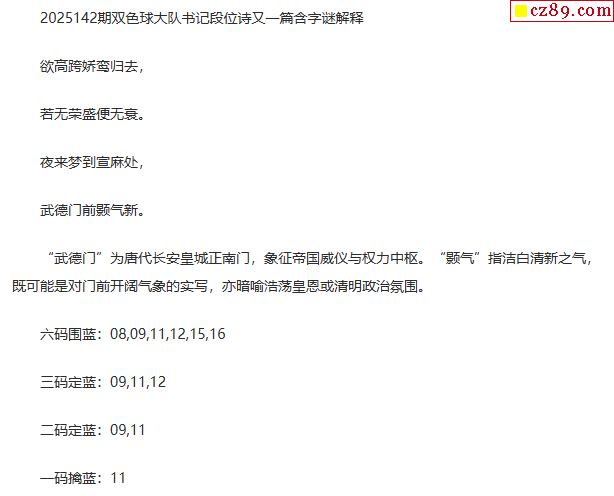 > 25年福彩双色球142期 大队书记段位诗另一篇