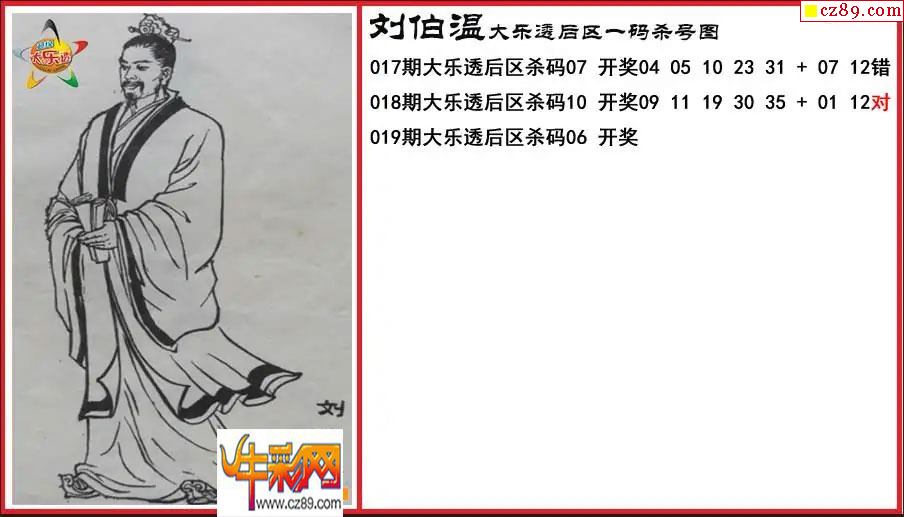 > 大乐透019期刘伯温后区一码杀号图